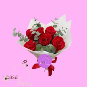 Un ramo de 6 o 15 rosas rojas importadas, dispuestas armoniosamente para resaltar su vibrante color, complementado con ramas de eucalipto que aportan frescura y contraste. Este ramo, ideal para bodas, aniversarios o celebraciones especiales, combina elegancia, pasión y un toque de frescura natural.